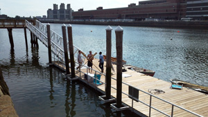 With its broad floating dock having a planked deck surface only 12.5" inches above the waterline, generous in cleats and other potential tie-up points, Fort Point Pier is perfectly suited as a FREE, public launch point to Boston Harbor for kayak, stand-up paddle board (SUP), sit-on-top (SOT), rowboat, scull, surf ski and windsurfer/sailboard.